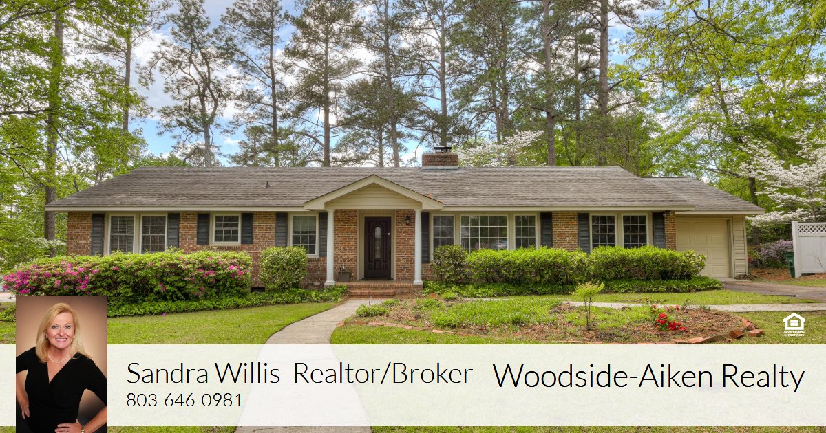 Great one level brick ranch in desirable Aiken Estates. This one owner home offers 3 bedrooms, 2 bathrooms, office, formal dining room, sitting room, and family room off of the kitchen with knotty pine walls and wood burning fireplace. This family room opens onto an enclosed porch with fireplace. The hardwood floors have just been refinished. The home is handicap accessible with wide doors and primary shower allowing easy entry. This .53 acre lot has beautiful mature plantings and sits nicely on a corner. This home will not last long!