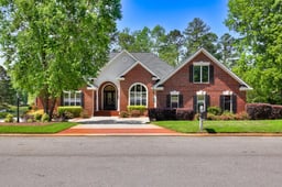 Stately home with stunning views overlooking Spalding Lake. Boasting beautiful hardwood floors, Anderson windows and doors, exquisite trim work, arched doorways, and high ceilings. This fabulous Kisner Built home has 4 bedrooms and 4.5 baths. The primary suite offers a large room with sitting area overlooking the lake, 2 large walk-in closets, and a very spacious completely renovated bath with a grand tiled walk-in shower, granite vanity, and custom cabinetry. There are two additional bedroom suites with ensuite baths on the main floor. The great room has a gas fireplace, French doors opening to the Trex deck and overlooking the fabulous view. The Great room flows into the formal dining room with exquisite trim and flowing into the kitchen. The kitchen is a cook's dream with custom cabinetry, stainless appliances including refrigerator, double ovens, cook top, microwave, dishwasher and an island with storage. The kitchen opens to the Carolina Room with windows overlooking the lake. Just off of the Carolina Room is an additional sitting room. Just off of the kitchen and living areas there is a powder room and a bar with beverage frig and storage. Upstairs there is a bonus room or 4th bedroom with a mini split unit and full bath. The low maintenance Trex deck has a retractable awning for shade and there is a lower patio and additional storage under the home. The roof is new as of Oct. 2024, the HVAC units are less than 3 years old. There are many upgraded features in this well-maintained home. Woodside is a gated community with walking trails, 2 country clubs with golf, tennis, and more.