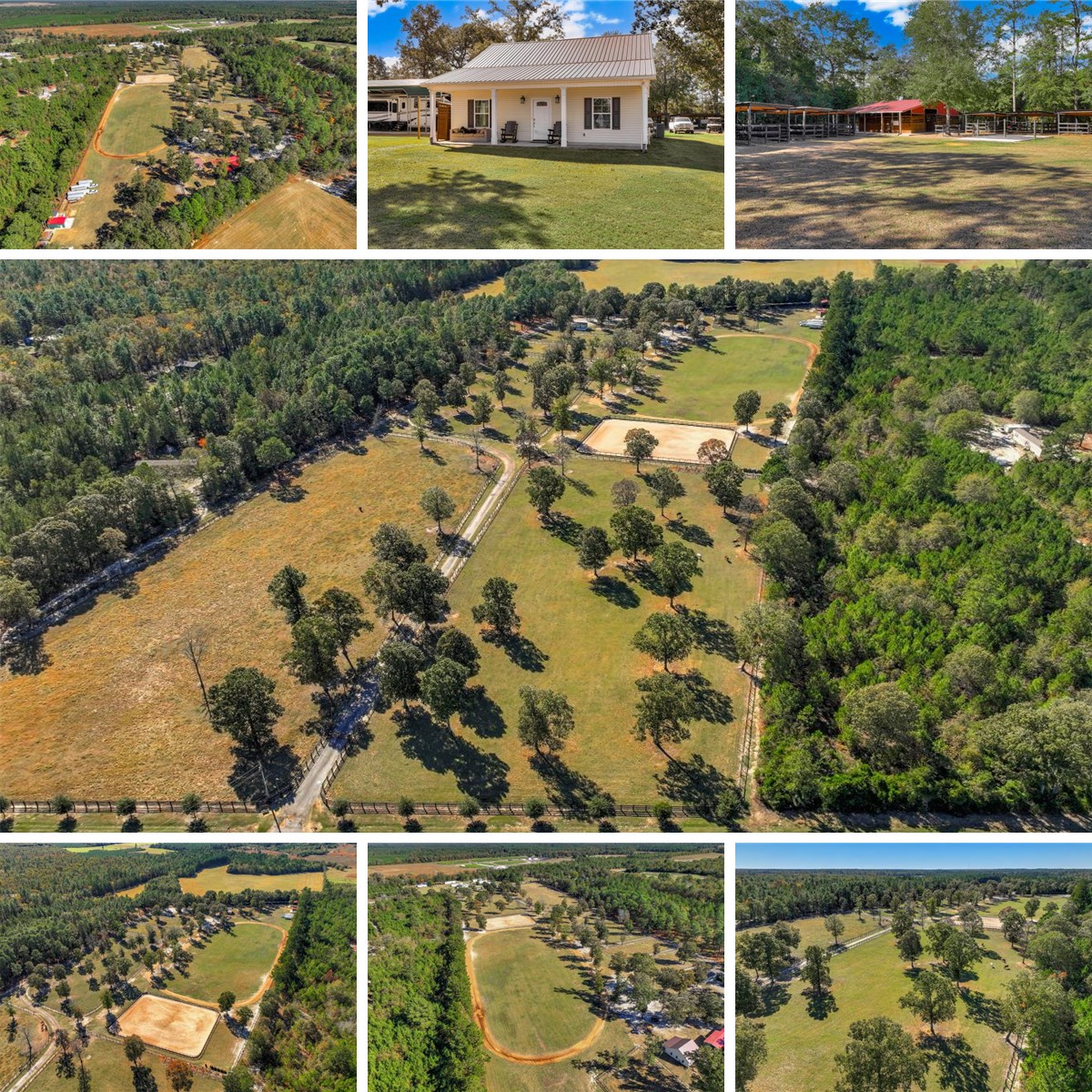 Expertly crafted and maintained working horse farm currently operating as a polo facility, offering outstanding value and extensive amenities. From the oak-lined road and automatic gated entry, the property's appeal is immediately evident. Spanning just over 24 acres, features include multiple paddocks (all with water), an open grass field with exercise track, a full-size sand riding arena, 11-stall barn, feed and tack building, hay storage, outhouse with washing machine, wash racks, 15 outside stalls, a large shop building, and two RV covers with hookups. There are two residences: a stick-built Sandhills cottage (2 bed, 2 bath, granite kitchen, wood-look tile, open floor plan, rocking chair front porch) and a 2018 double-wide on foundation (4 bed, 2 bath, vinyl flooring). Additional highlights include an oversized well, underground utilities, and numerous equestrian-focused upgrades. Constructed since 2018 and meticulously maintained, this turnkey property truly offers a “Best Life” experience.