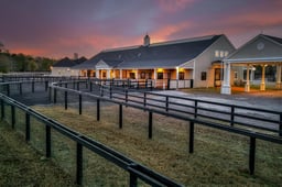 The 10,000+ sq. ft. center-aisle barn is truly impressive! It features six 16' x 16' stalls with rubber-sealed flooring, a grooming stall, and a wash stall equipped with heat lamps, industrial lighting, and built-in storage. Two 16' x 16' storage stalls and two 8' x 8' stalls each have automatic garage bay doors. The fully climate-controlled 480 sq. ft. tack room includes custom cabinetry, granite countertops, a dog wash station, refrigerator, refrigerator, and microwave, along with a rotating custom saddle rack and bridle holder. Each stall is outfitted with Nelson automatic waterers, StableGrazer automatic hay feeders, individual stall cameras, fly spray misting systems, and fans. The rear of each stall includes a covered run-in with additional fans, turnout access to individual paddocks with mud mats. The paddocks are equipped with automatic watering systems.